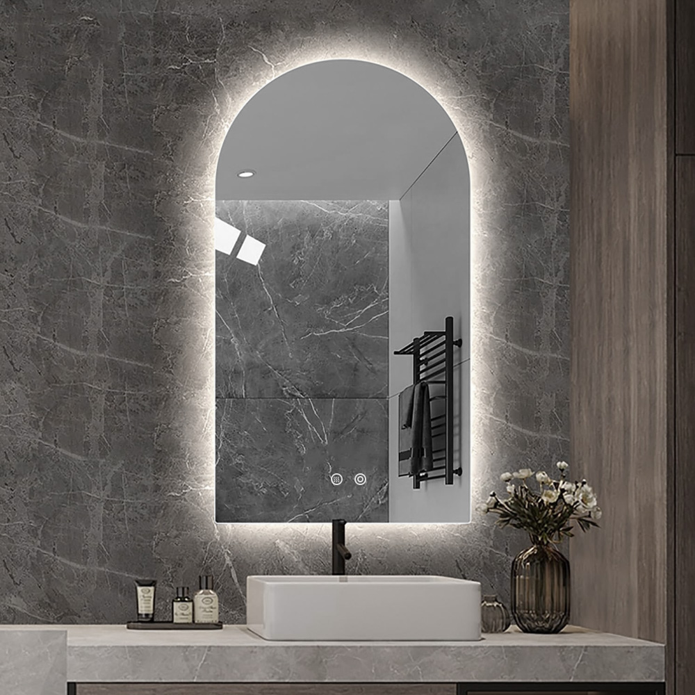 Bring a graceful touch to interiors with the Arched Wall Vanity Mirror with Light Backlight. The arch silhouette creates a sense of height and elegance, while the gentle backlighting adds ambiance. A refined choice for hotels or design-focused commercial spaces.