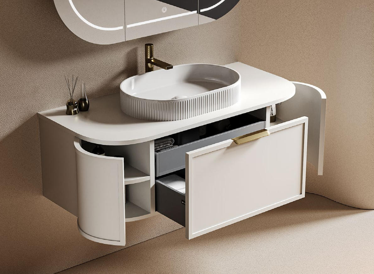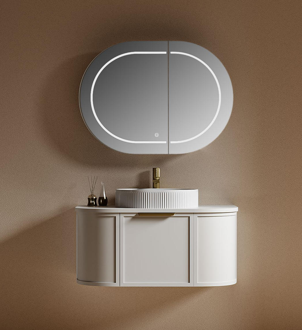 Bring hotel-level sophistication into your home. This wall-mounted vanity with LED mirror features a clean, modern floating design and generous storage space to keep your bathroom beautifully organized.