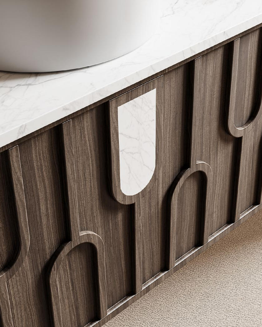Crafted for premium hospitality environments, this luxury bathroom vanity features a solid stone basin paired with a robust aluminum frame. Its minimalist yet refined structure delivers long-lasting durability and a timeless aesthetic—ideal for upscale hotel suites and modern resort interiors. The clean lines and high-quality finish reflect the essence of professional project design.
