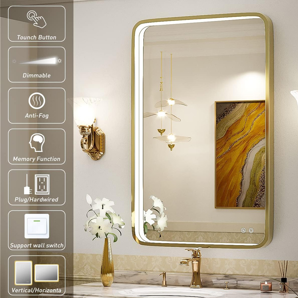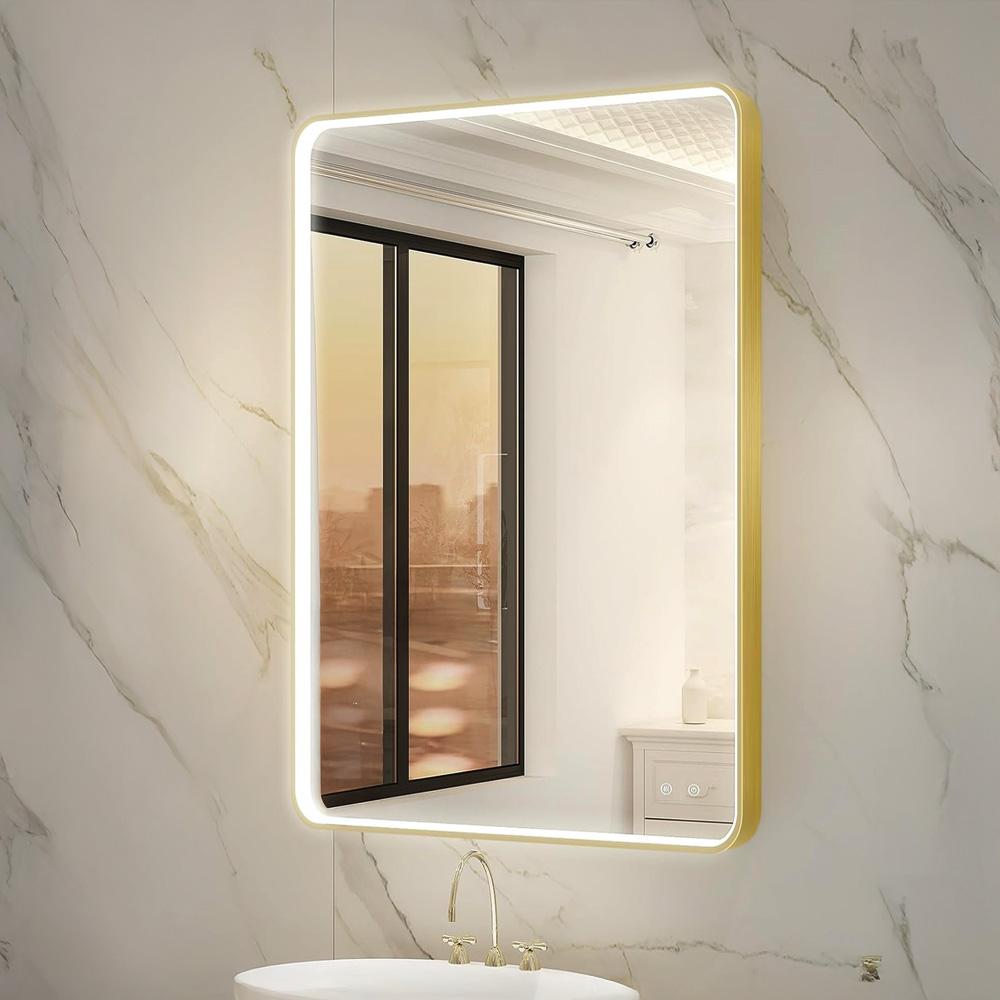The Luxury Gold Metal Frame LED Light Mirror adds a refined statement to upscale interiors. Its radiant gold frame brings warmth and sophistication, while integrated LED lighting ensures clear, flattering reflection. A premium choice for luxury hotels, apartments, and design projects.