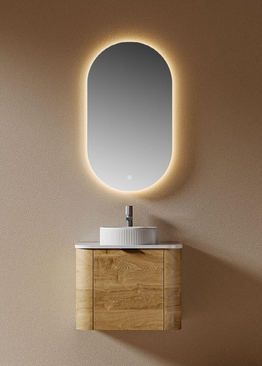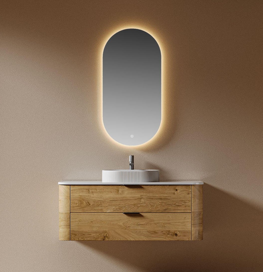Designed for hotel and apartment projects, this minimal wall hung vanity features a smooth ceramic countertop, elegant curved edges, and a clean silhouette that enhances contemporary interiors with refined simplicity.