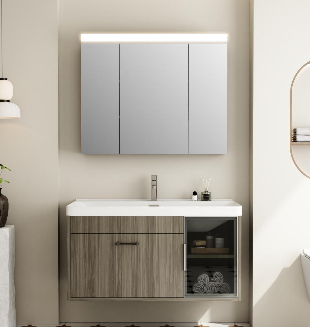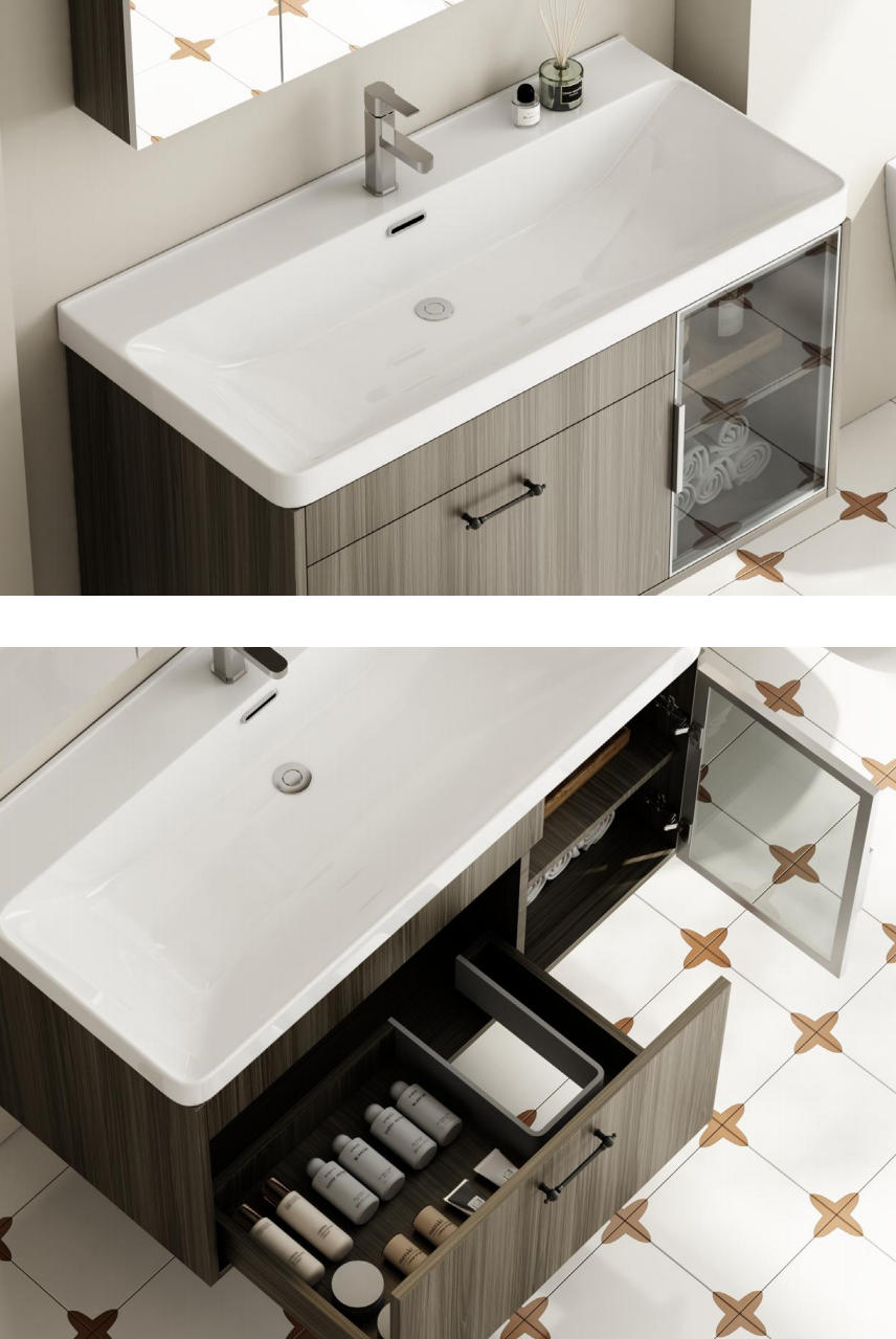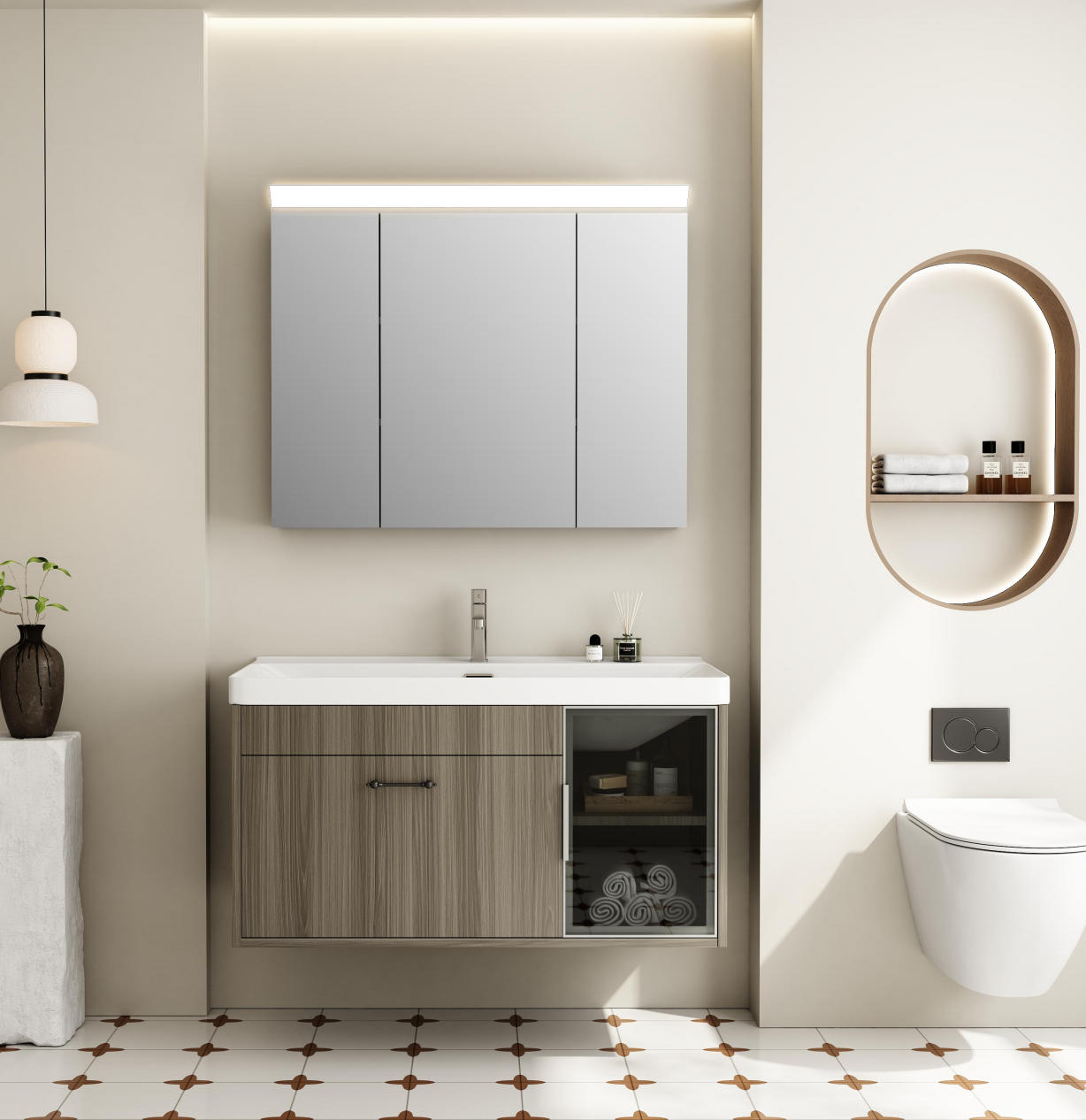 Perfect for apartment projects, this modern bathroom set combines style and functionality. Compact and practical, it provides efficient storage and a sleek design, making it ideal for contemporary living spaces.