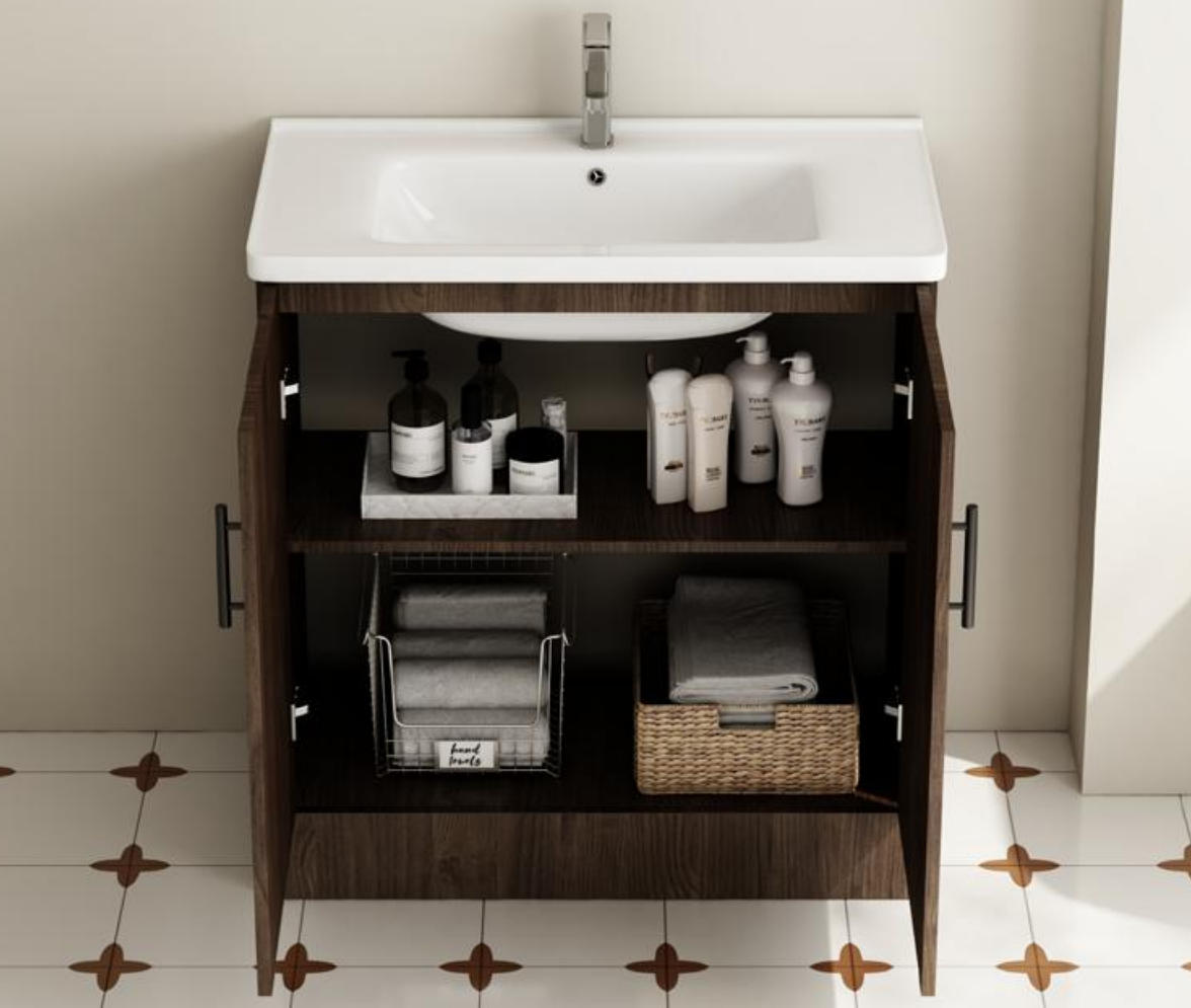 Bring warmth and modern style to your bathroom with this natural wood tone cabinet. Its sleek design fits contemporary interiors, offering practical storage while enhancing the overall aesthetic of your space.