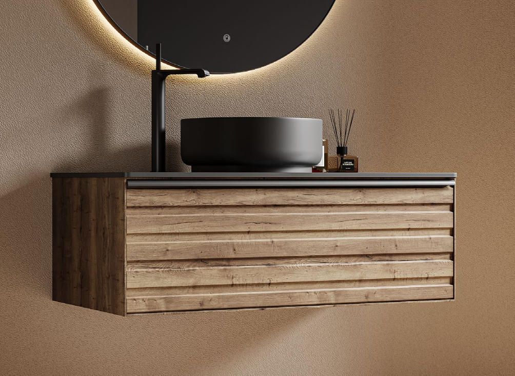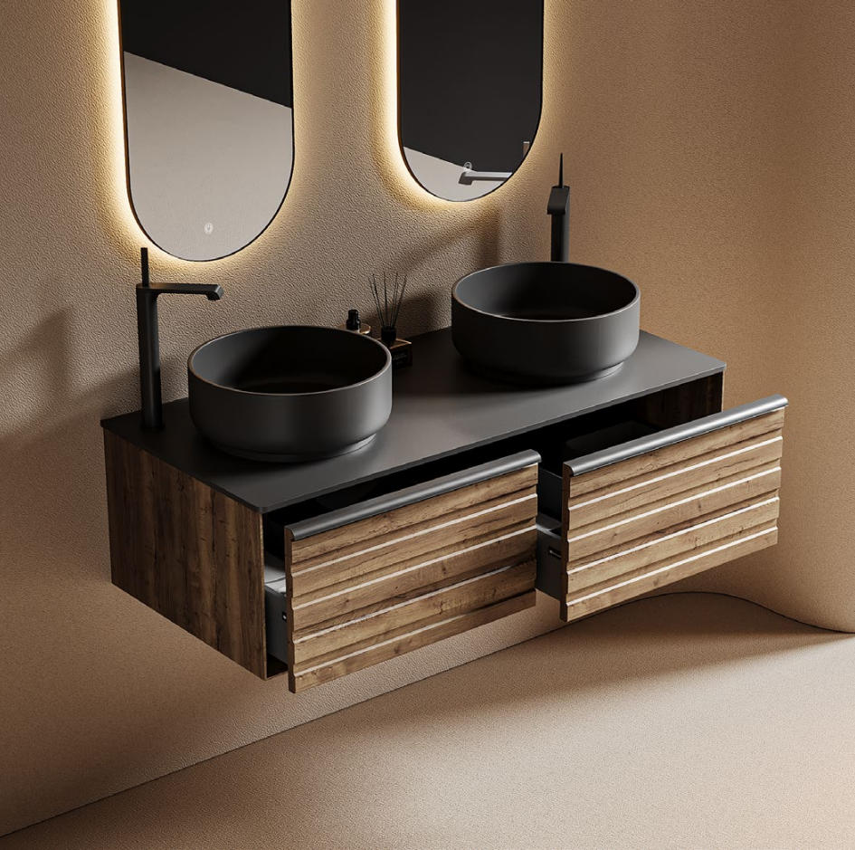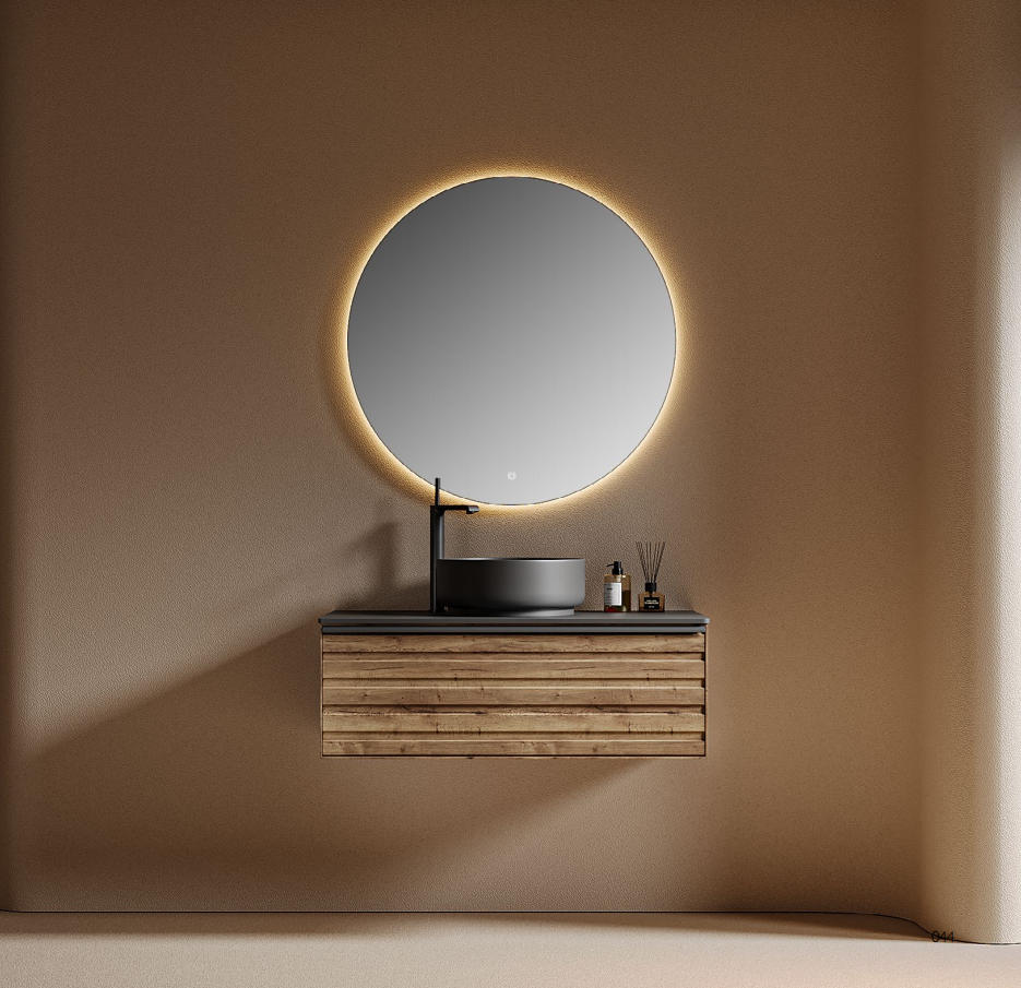 Designed for hotel and apartment projects, this minimal wall hung vanity features a smooth ceramic countertop, elegant curved edges, and a clean silhouette that enhances contemporary interiors with refined simplicity.