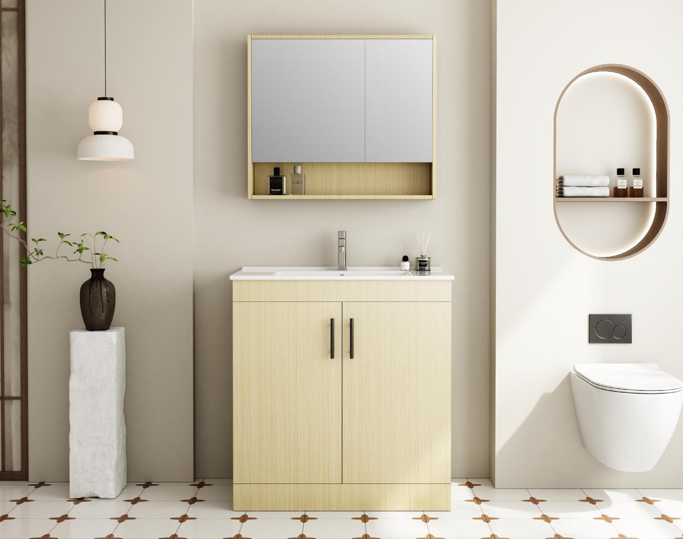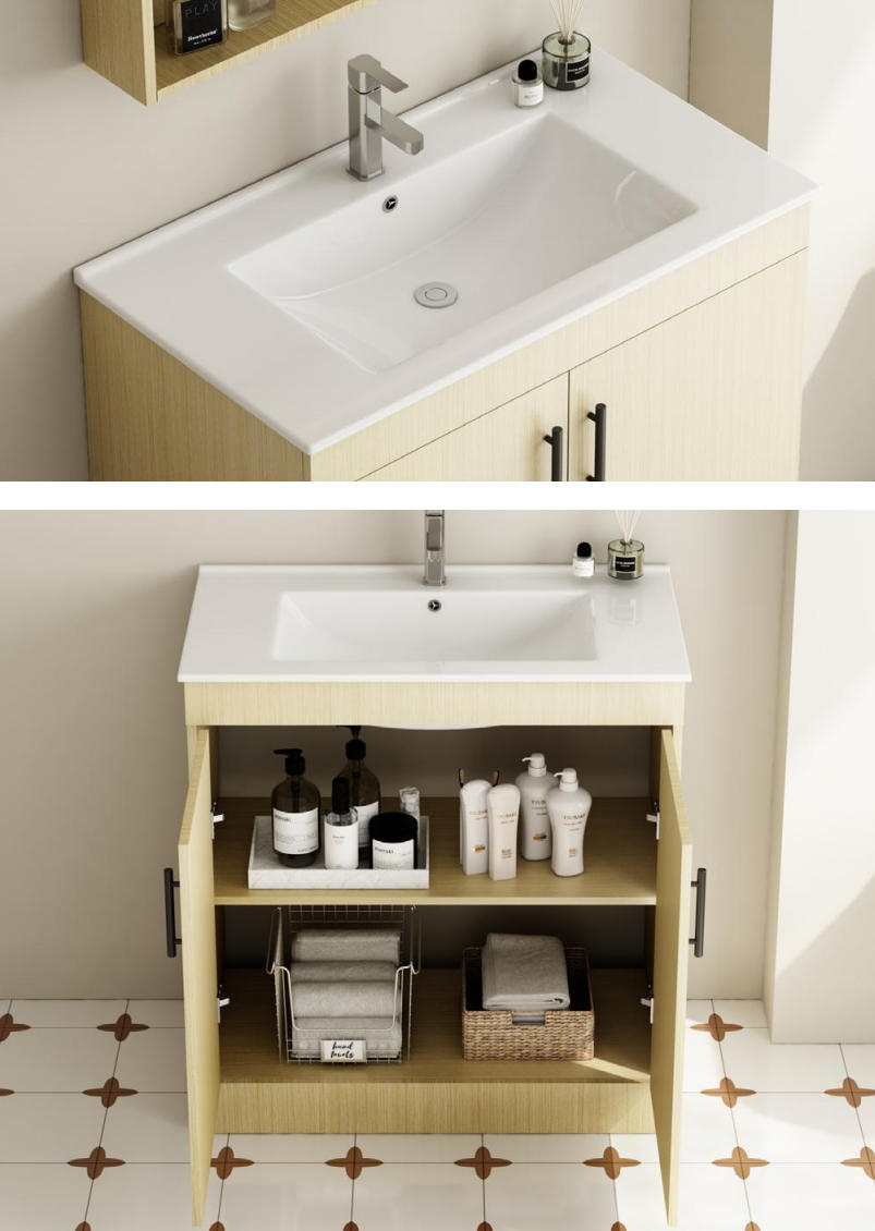 Upgrade your bathroom with this PVC vanity set, complete with a sleek wash basin and matching wall mirror. Lightweight yet durable, the PVC construction resists moisture and makes cleaning easy. Compact and stylish, it offers practical storage while adding a modern touch to any bathroom space.