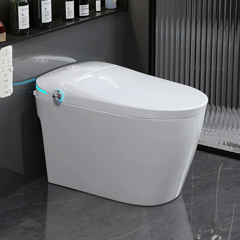 High-quality smart toilet with tank and bidet system, featuring automatic dual flush and heated seat. Ideal for distributors, retailers, and project suppliers. Bulk pricing and OEM support from trusted factory source.
