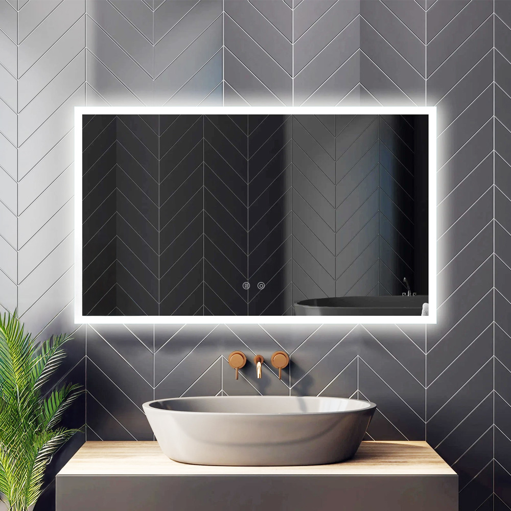 | – 5mm copper free silver mirror with defogger – 2835 120LED/m, 3000K-6000K, CRI>80 – Touch switch, Dimming & CCT Changing – Built-in CE LED driver – IP44 / Damp location – Aluminium frame |